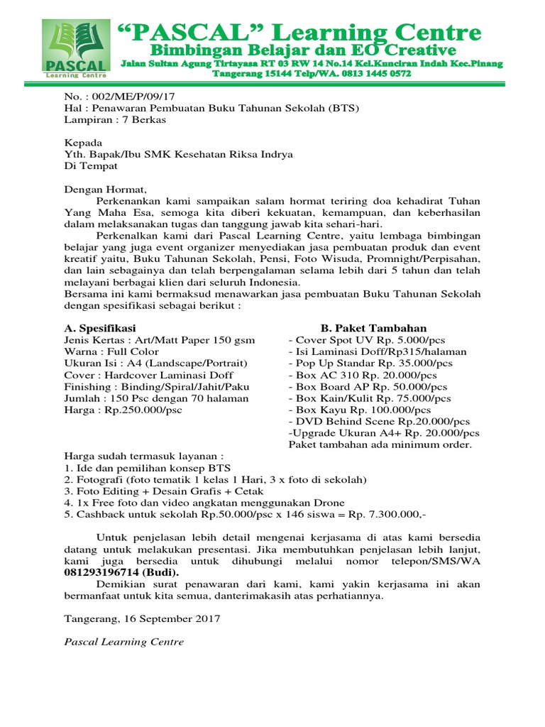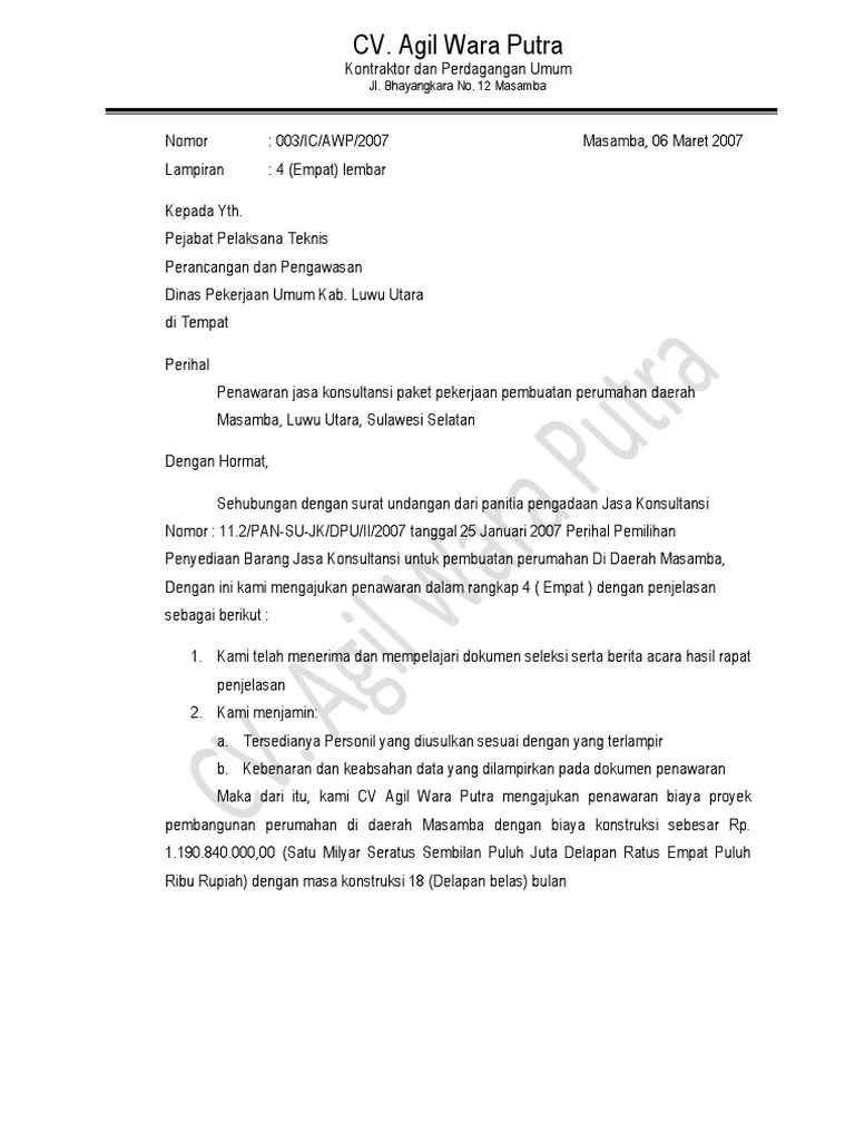 Surat ini bisa dibuat atas inisiatif perusahaan, atau sebagai. Bila anda atau teman, kerabat anda merupakan seorang graphic designer yaitu seseorang yang mempunyai keahlian membuat logo, banner, spanduk, baliho atau bahkan desain website. Contoh surat penawaran barang dan jasa contoh surat penawaran barang dan jasa contoh surat penawaran harga barang pdf 10 contoh surat penawaran resmi yang Media promosi harus dibuat dengan baik dan sesuai dengan identitas perusahaan agar calon konsumen bisa tertarik saat melihatnya. Anda sedang membuka postingan contoh surat penawaran harga jasa yang berada pada kategori contoh surat dengan tag postingan berikut contoh anda dapat melihat dengan jelas contoh surat penawaran harga jasa menggunakan desktop anda, tablet, android atau iphone dan perangkat.