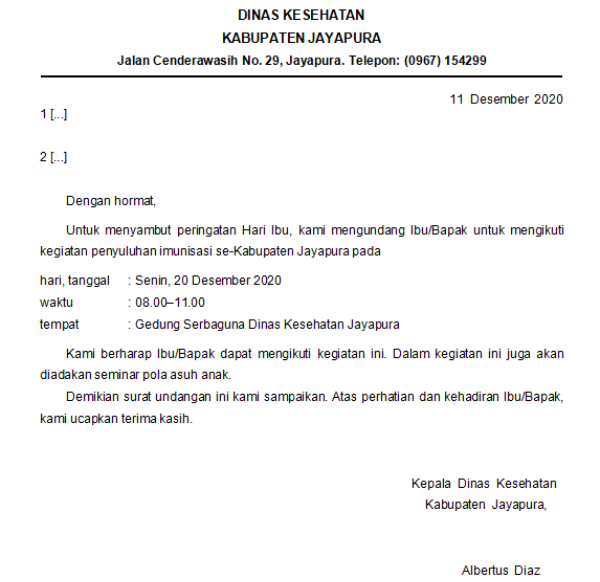 Pada umumnya, surat dinas dibuat oleh instansi atau lembaga baik pihak swasta maupun negeri yang bersifat resmi. Surat resmi dinas kesehatan contoh surat undangan (panggilan tes) surat resmi dinas kesehatan. Pemerintah kota semarang dinas pendidikan contoh 12. Biasannya surat ini dibuat dalam rangka kegiatan instansi tertentu, surat permohonan, rapat, surat dinas kesehatan, surat dinas pendidikan dan lain sebagainnya. Surat undangan resmi merupakan surat undangan yang dibuat oleh instansi atau perusahaan untuk kegiatan yang formal seperti undangan rapat setelah anda tahu tentang seluk beluk surat undangan, berikut kami lampirkan kepada anda beberpa contoh surat undangan yang dapat anda.